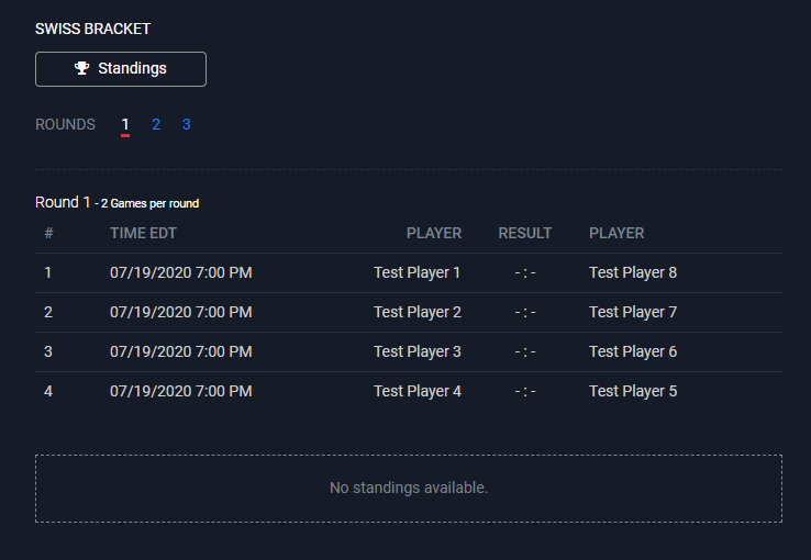 Ο επόμενος γύρος δεν ξεκινά αν δεν ολοκληρωθούν όλοι οι αγώνες του προηγούμενου γύρου και δεν δημιουργηθεί επίσημα από τον διοργανωτή. Οι παίκτες οφείλουν να περιμένουν την ανακοίνωση του επόμενου αντιπάλου τους ή να επικοινωνούν με τον διοργανωτή, ιδιαίτερα σε διοργανώσεις που διεξάγονται σε περισσότερες από μία ημέρες.
